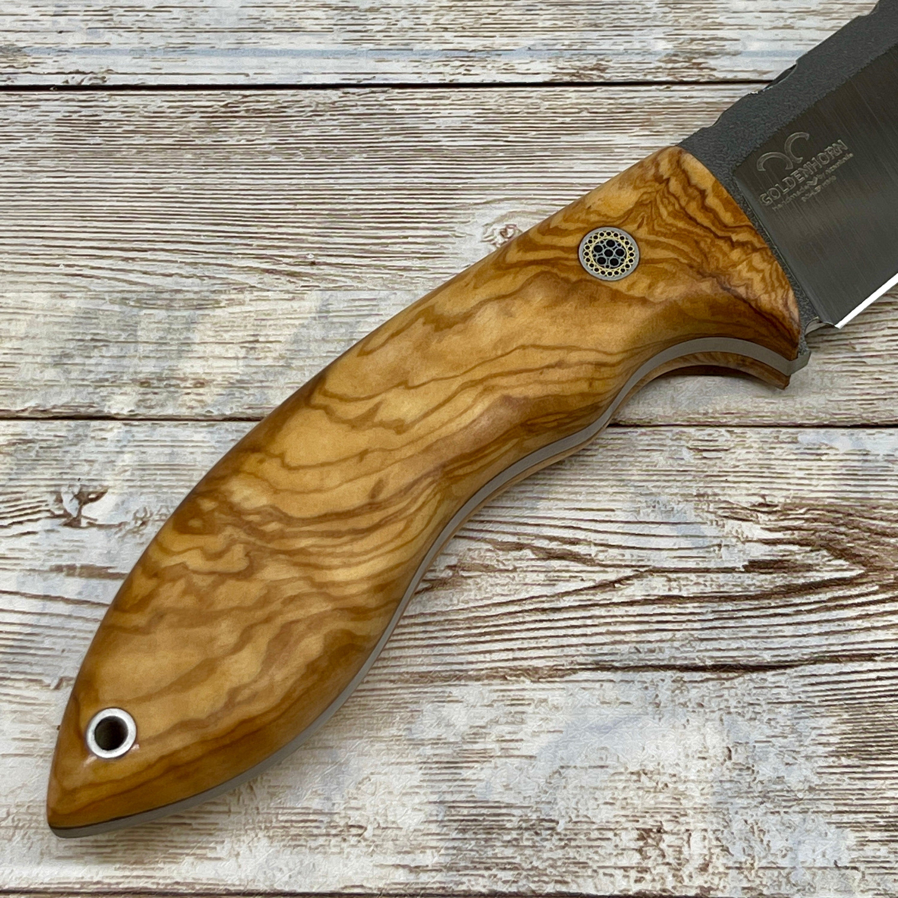 The KILIMANJARO O camping knife is constructed with precision and attention to detail. The handle, made from Olive Tree Wood, not only provides a comfortable grip but also adds a touch of natural elegance to the knife. The full back file work enhances both the aesthetic appeal and the functionality of the knife, ensuring a secure grip in various outdoor situations.