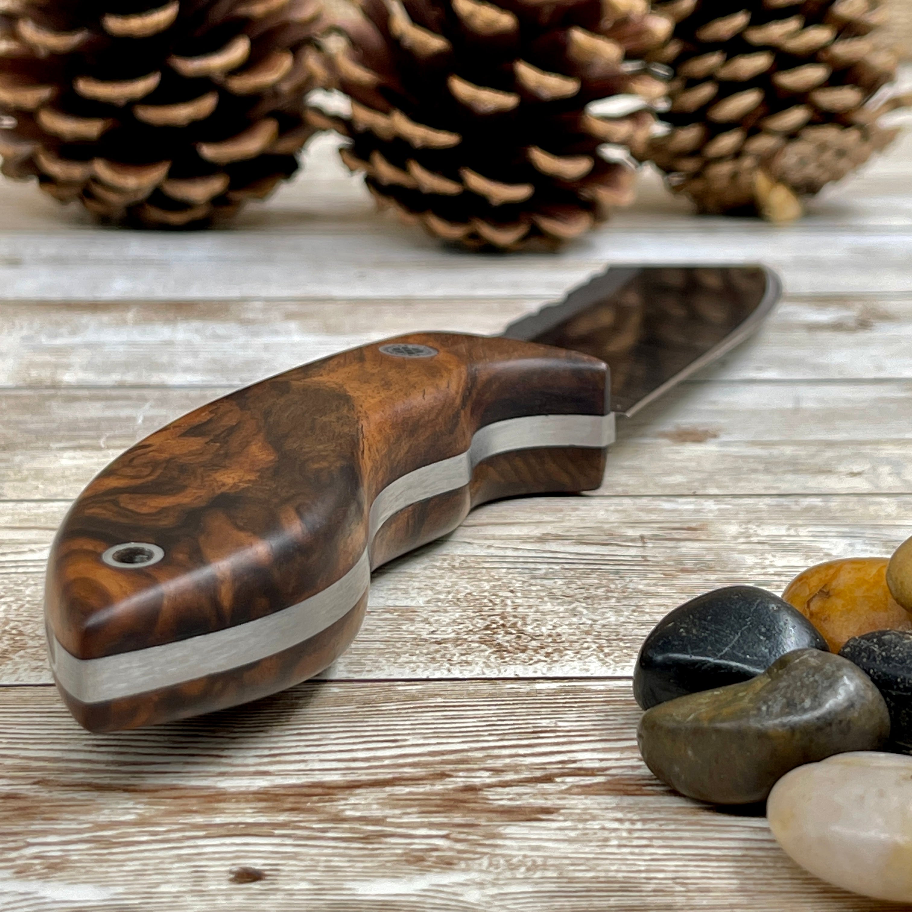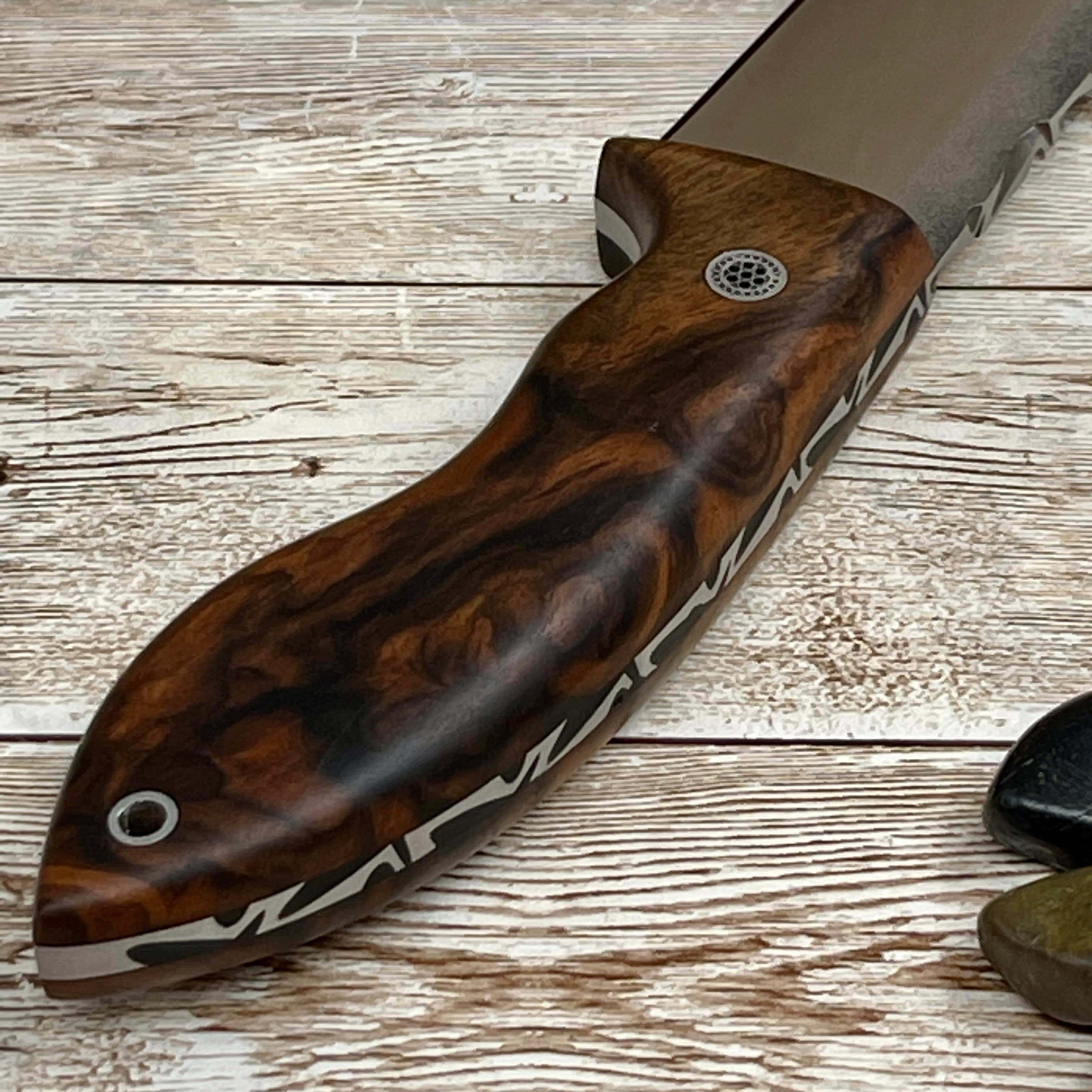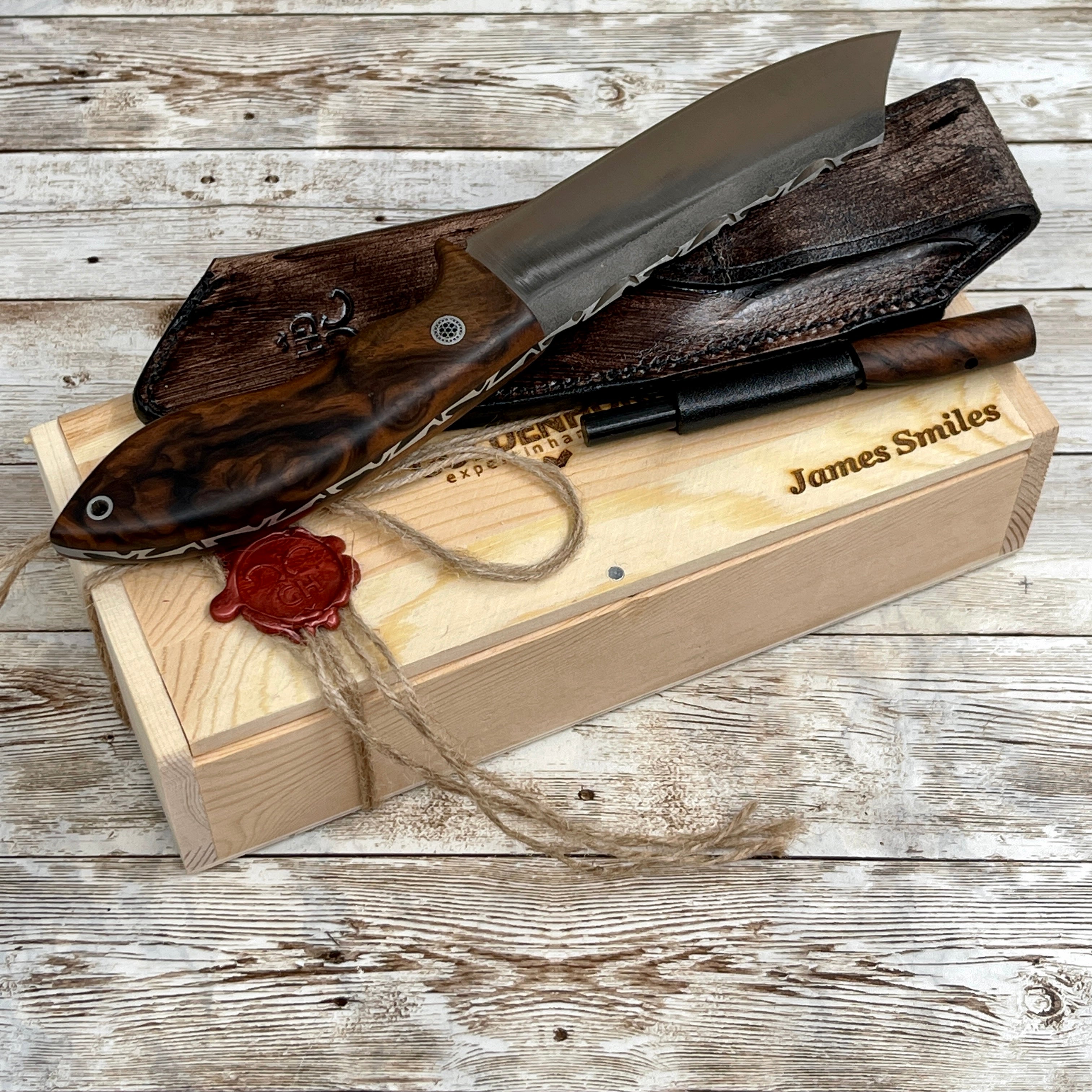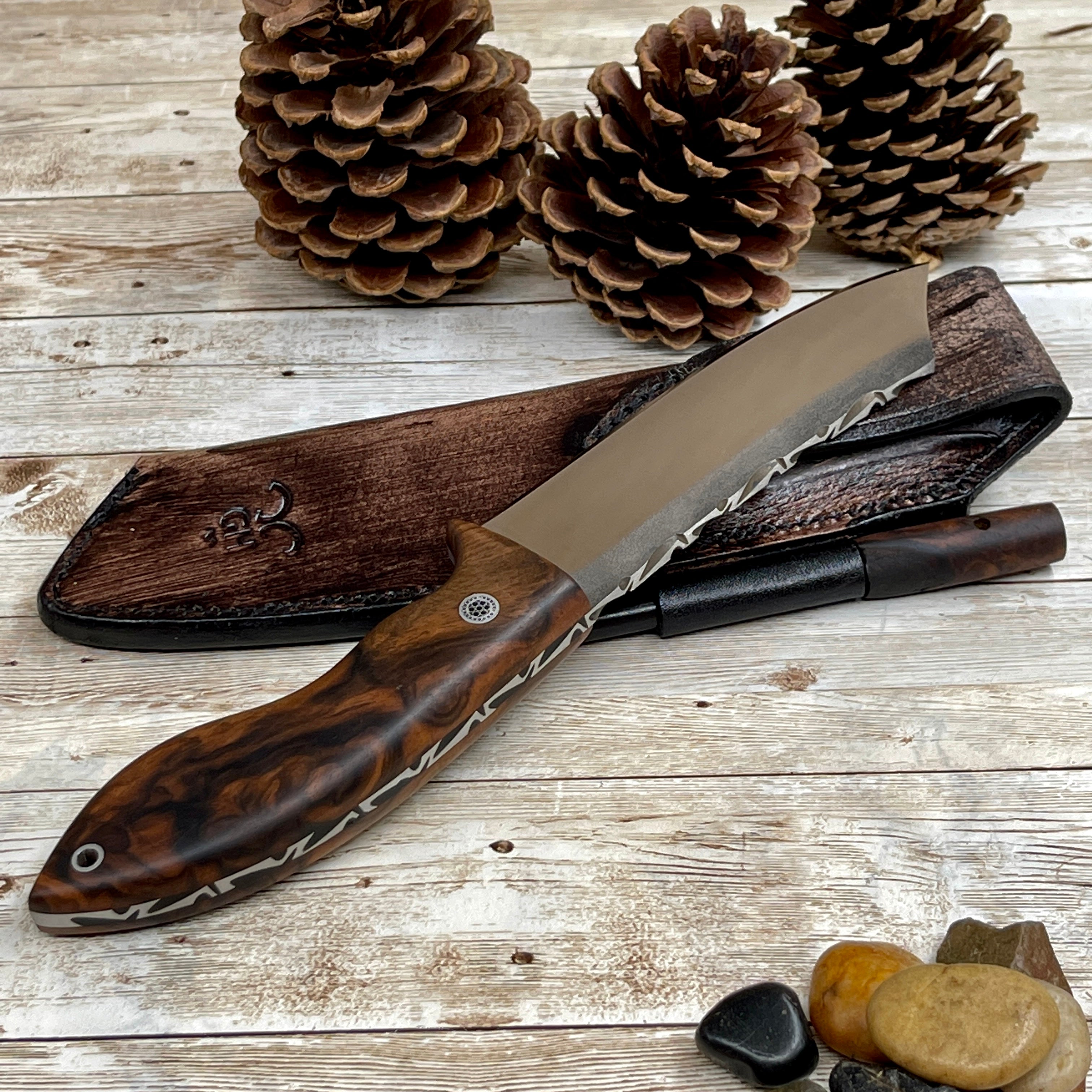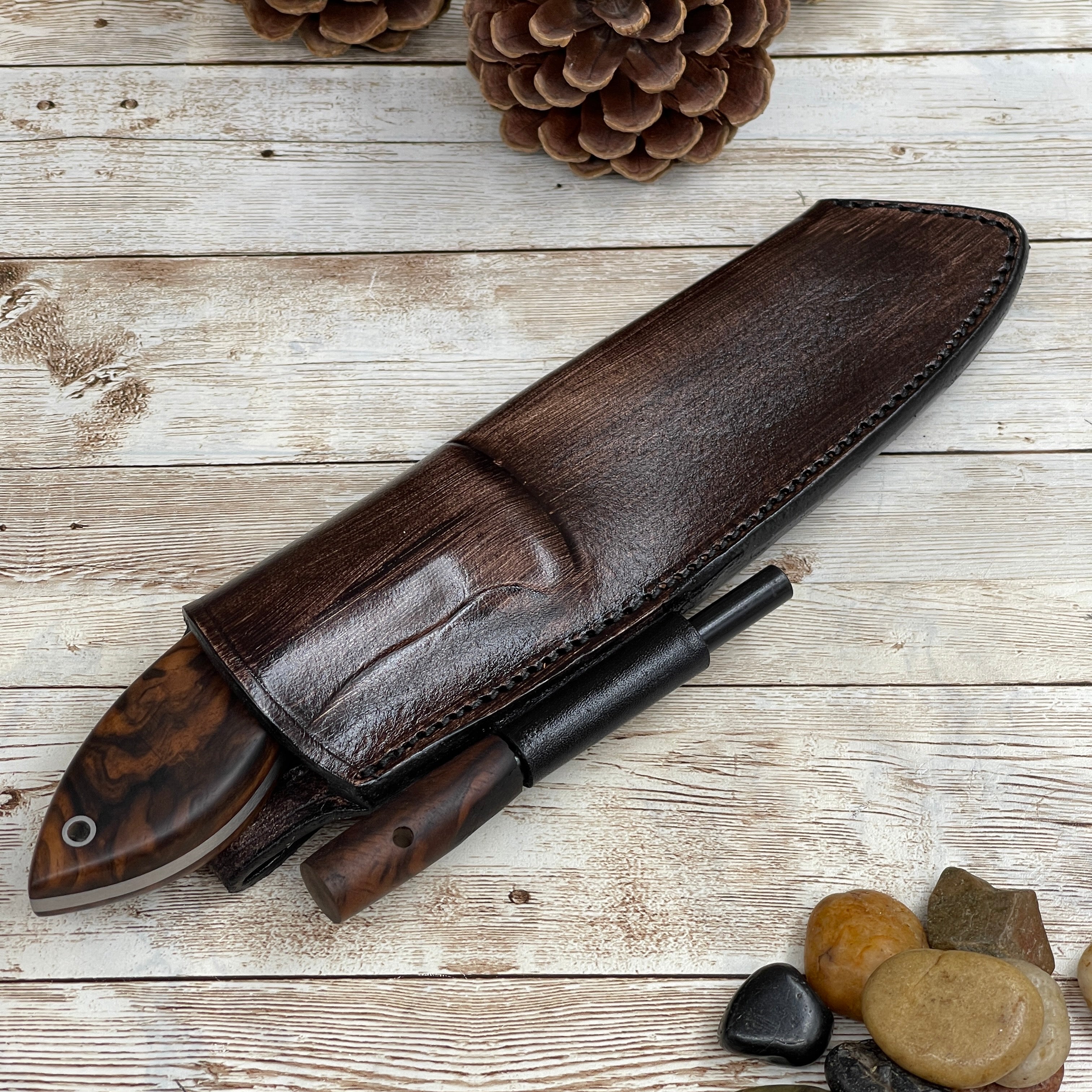 A quality leather case comes in handy when it comes to the safety of your handmade knife. The leather case is made from 3mm thick leather, making it long-term storage for bush craft kitchen knife safekeeping. You will use the case for many years.