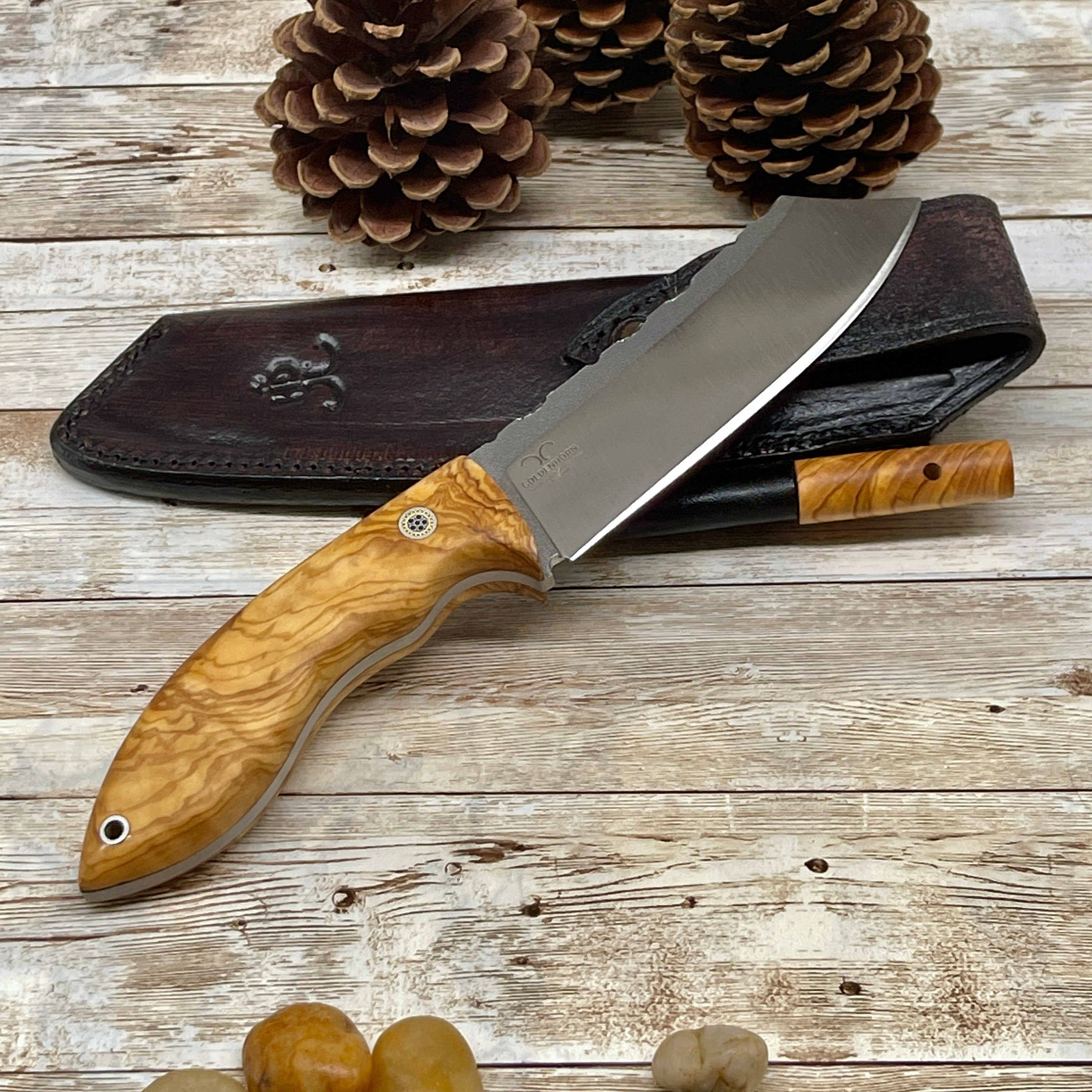 Camping Knife Turkish Olive Wood Tree Handle with Leather Sheath Hunting Knife Skinner Knife N690 Knife Bushcraft Knife Handmade N690 Stainless Steel Kilimanjaro Olive Wood Handle Hunting Knife with Leather Sheath, Professional Hunter Knife, Engraving to Sheath/Handle