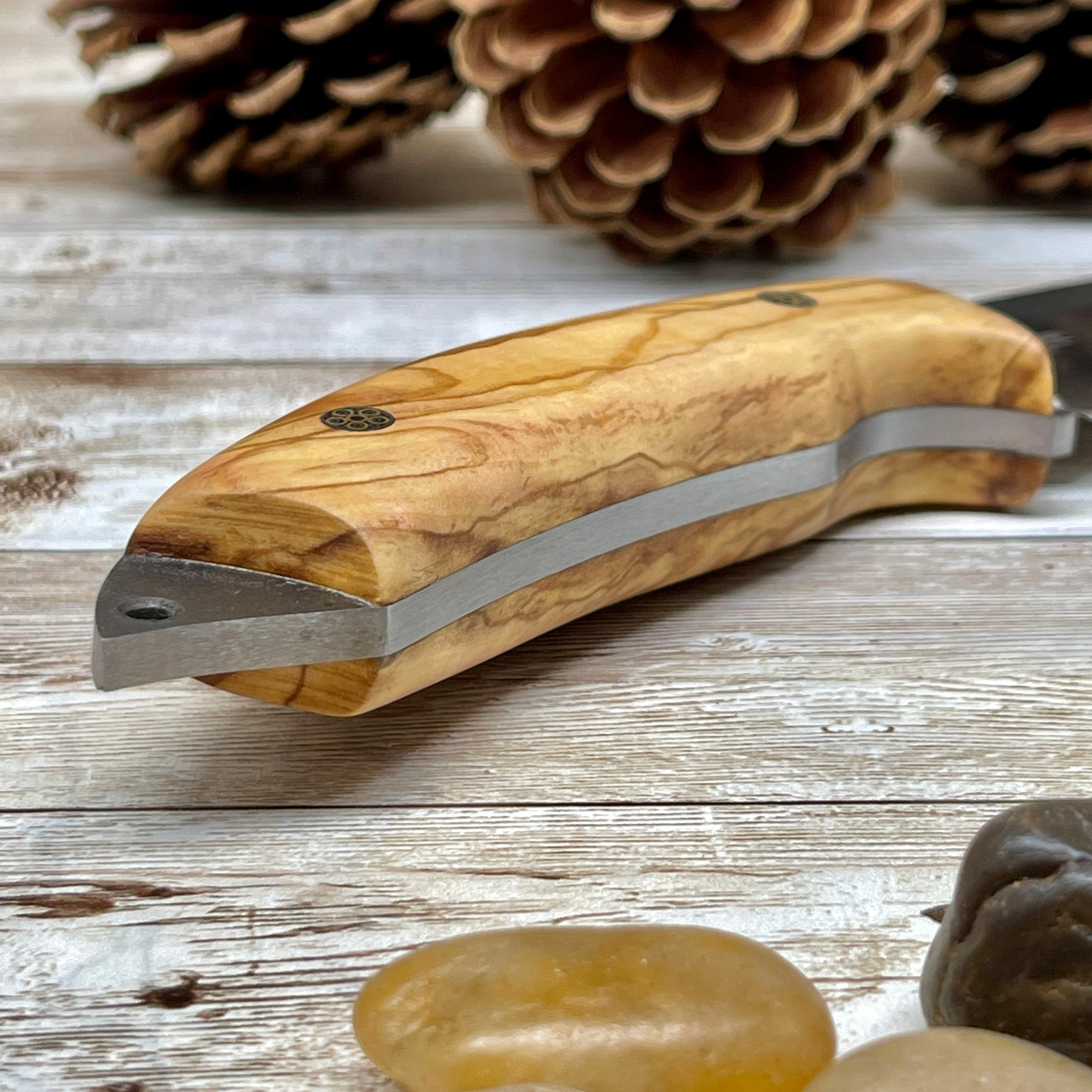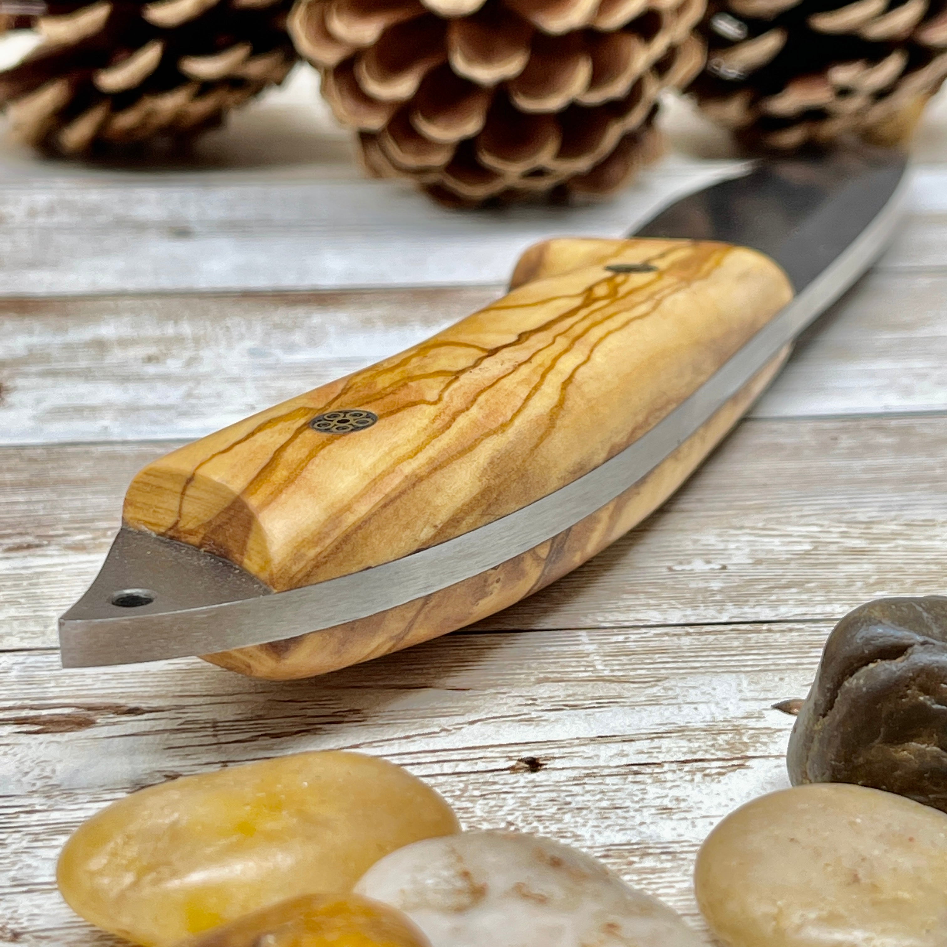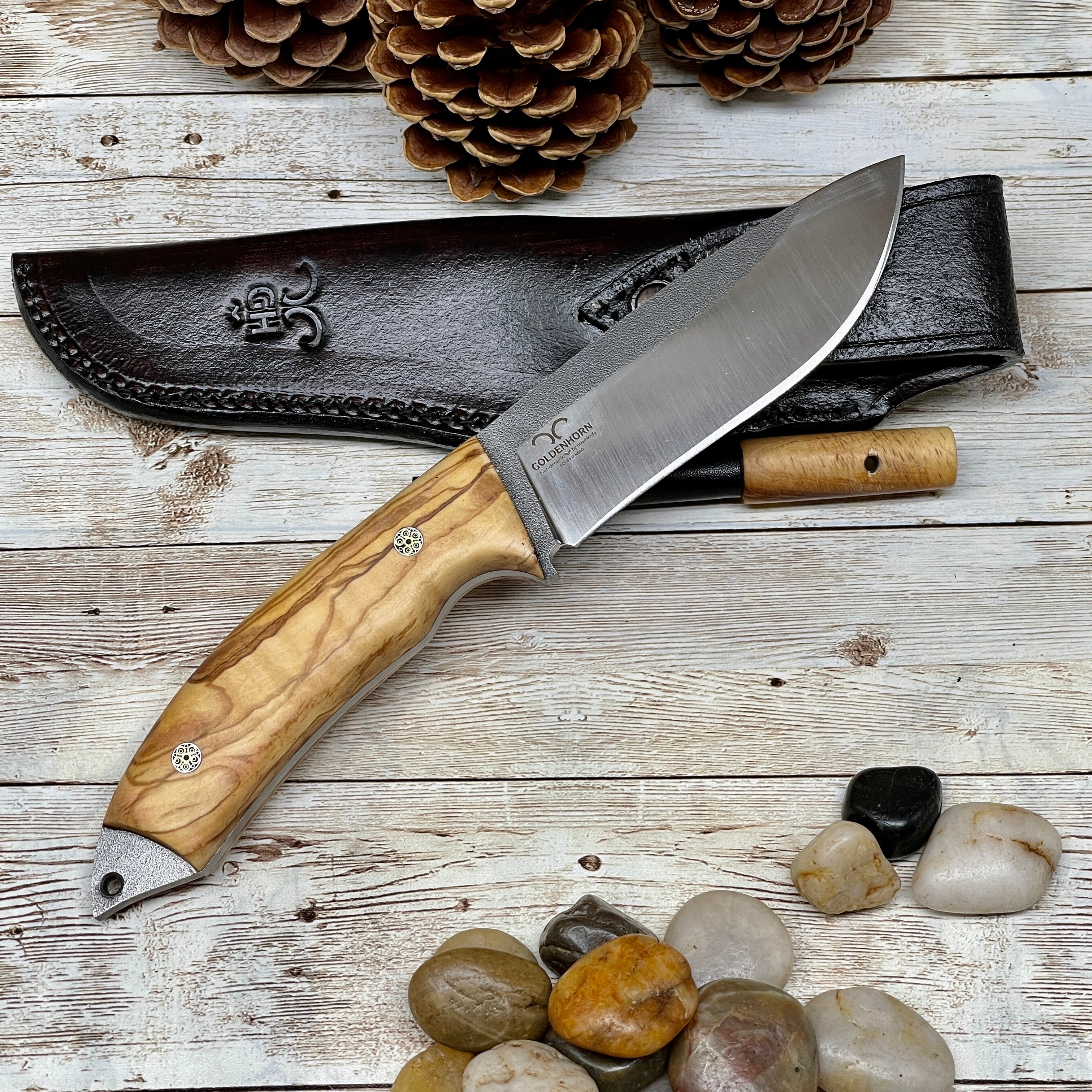 Hunting Knife Camping Knife with Olive Wood Handle and Leather Sheath