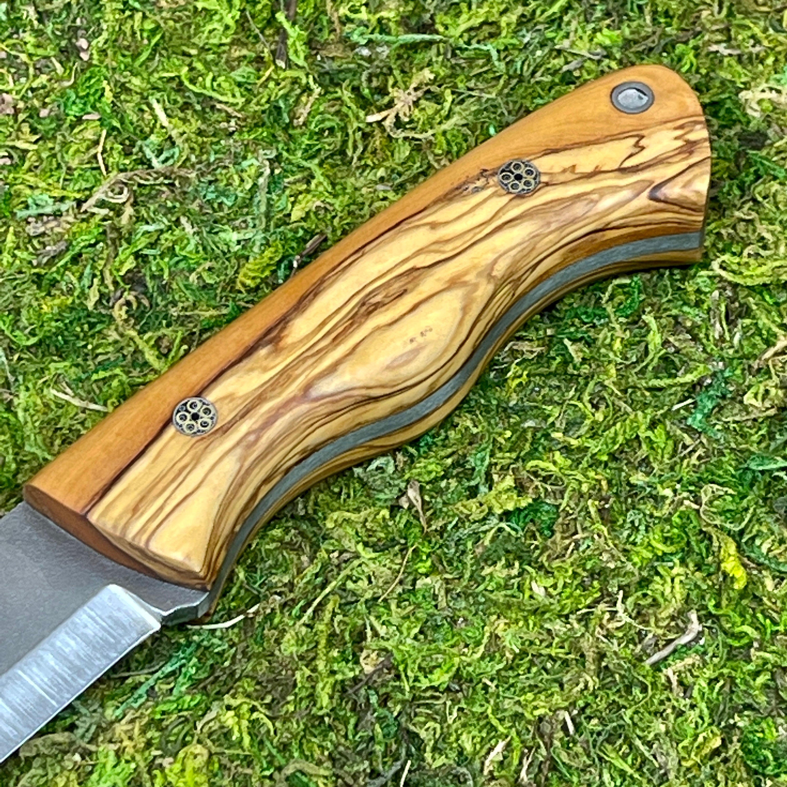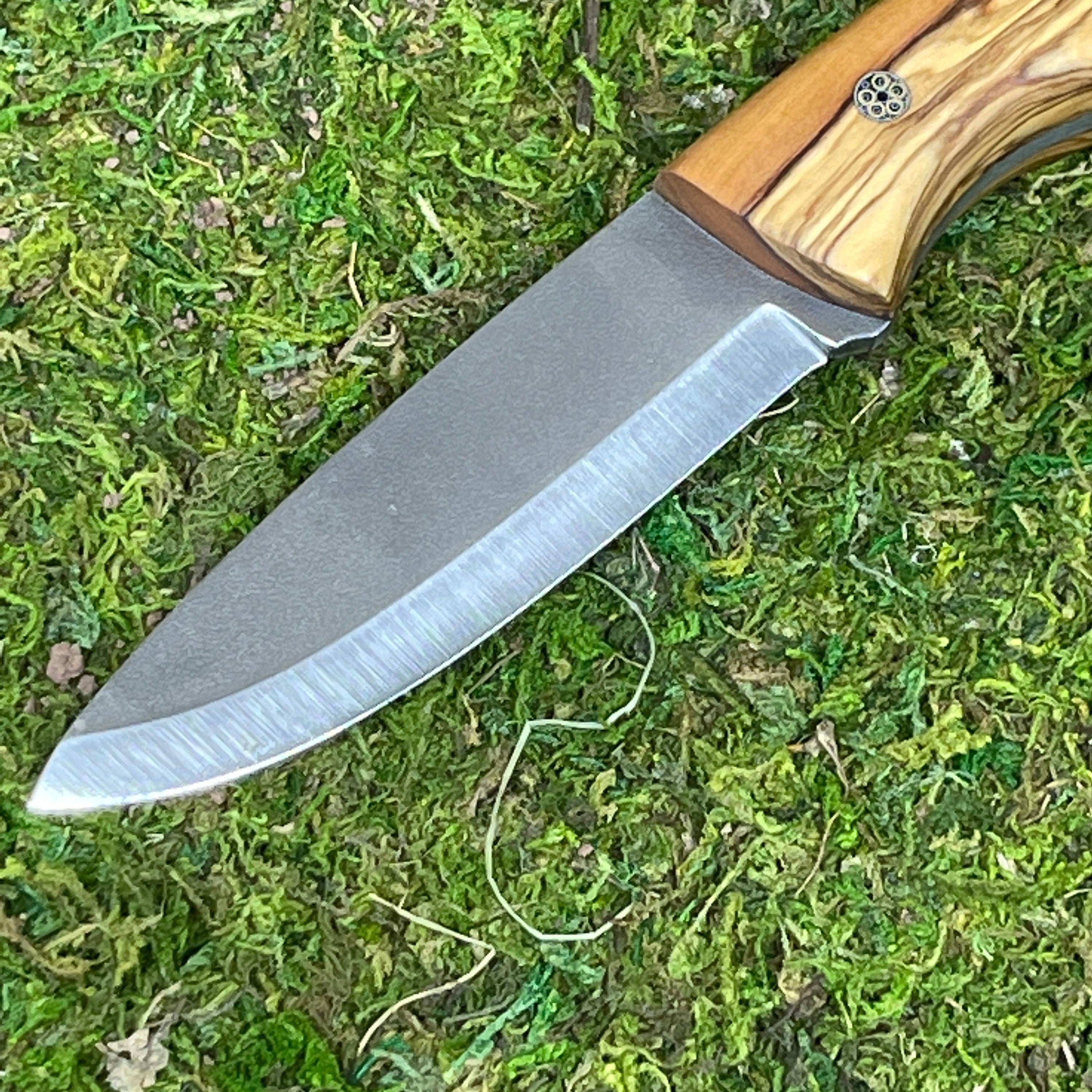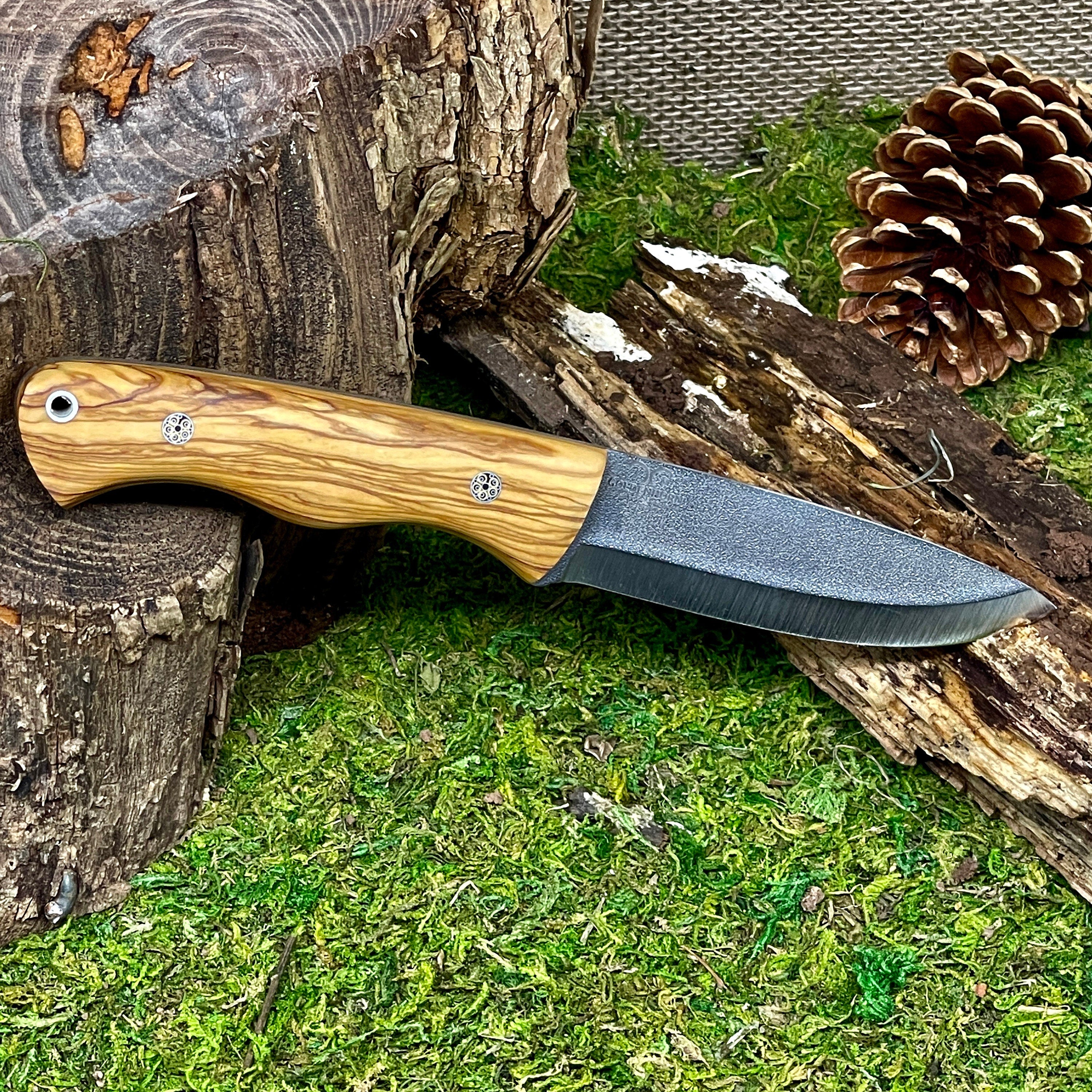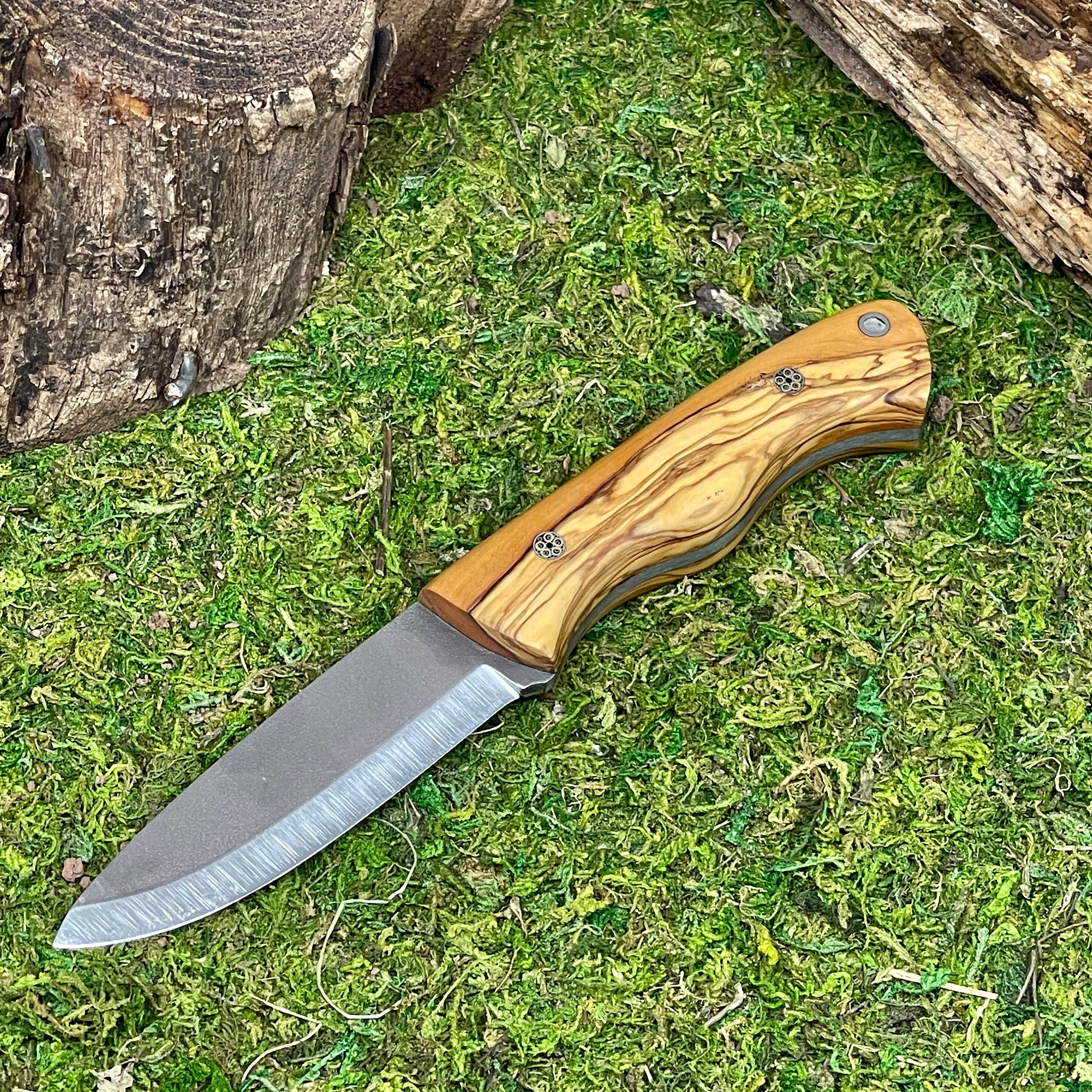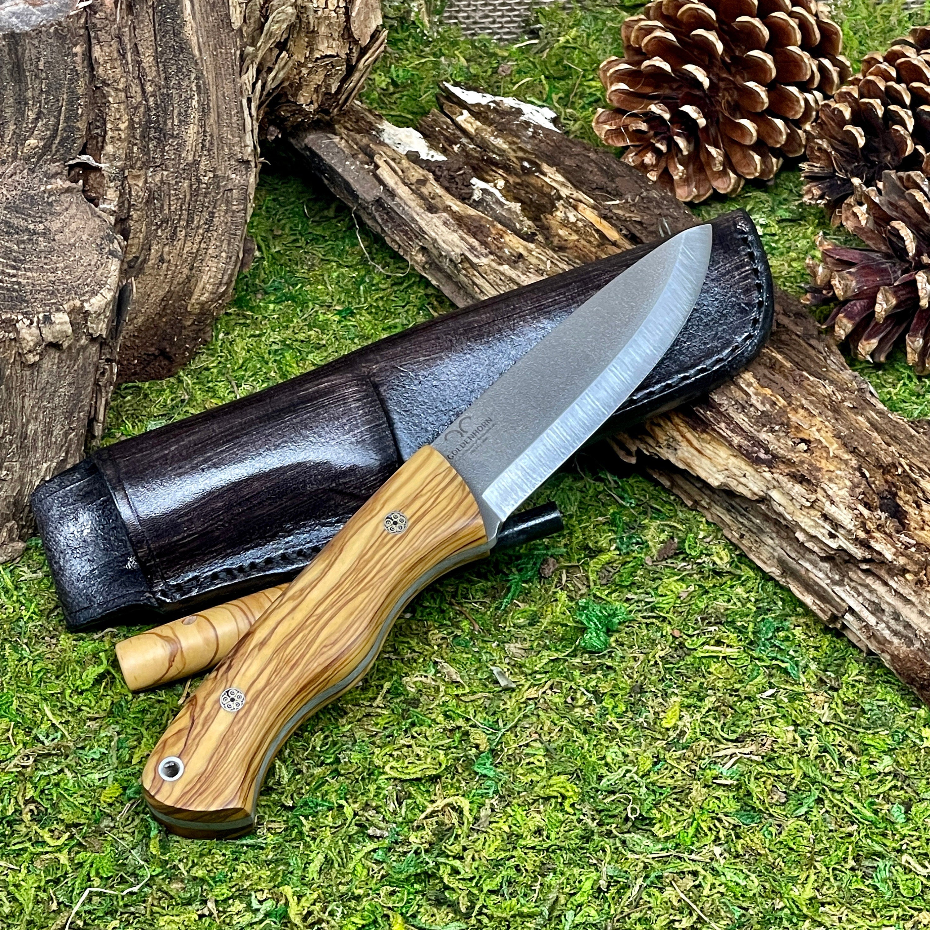 N690 Camping Knife, Professional Hunting Knife, Leather Sheath, Bushcraft Knife, Skinner Knife, Olive Tree Handle