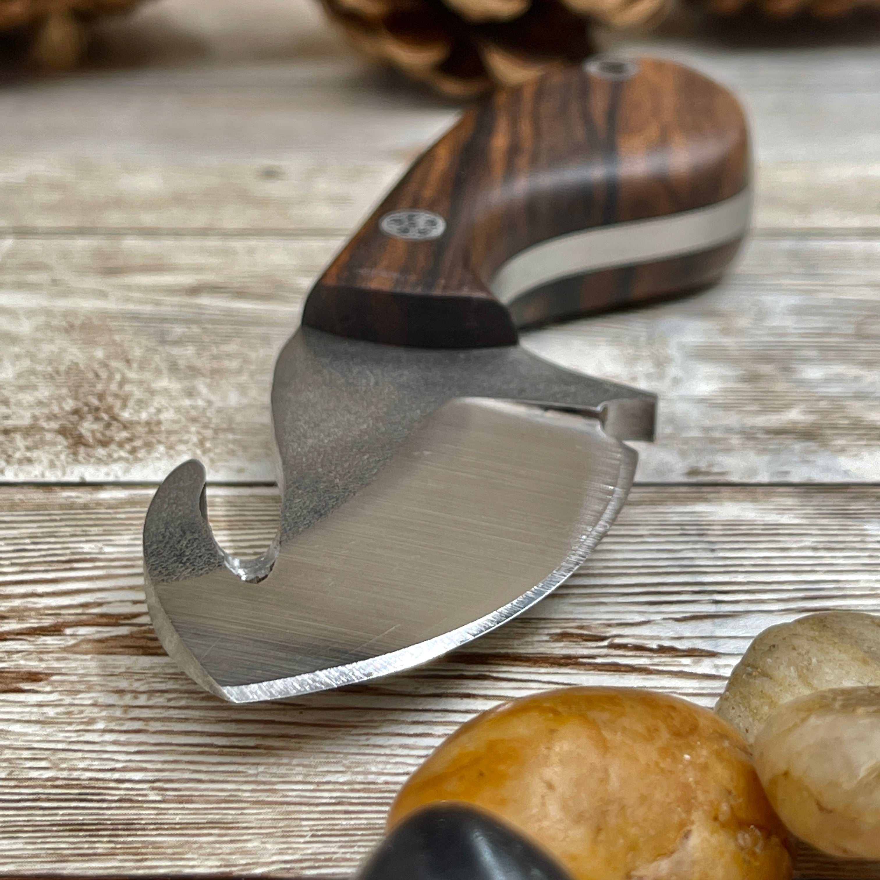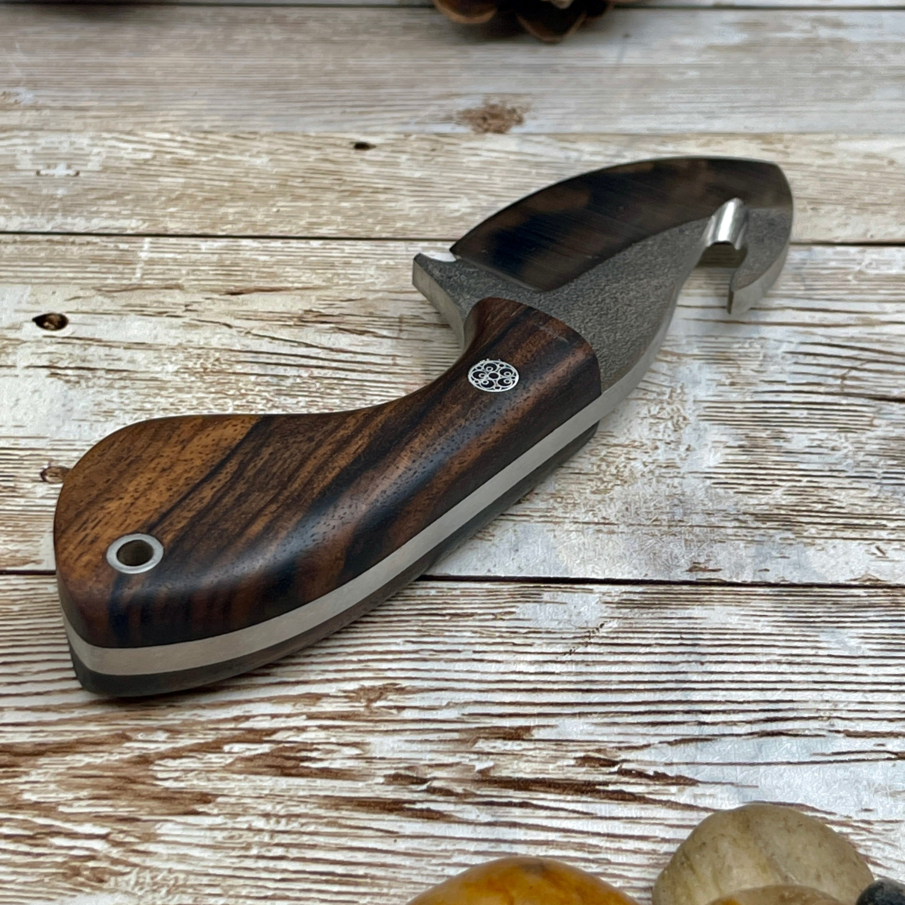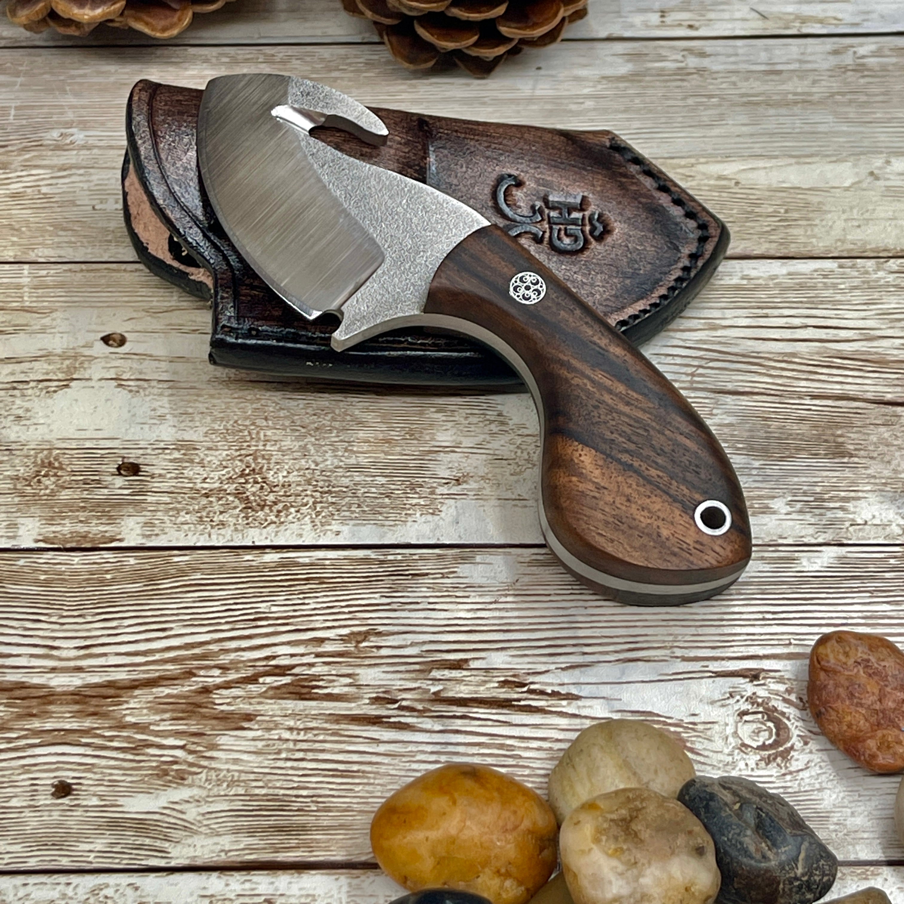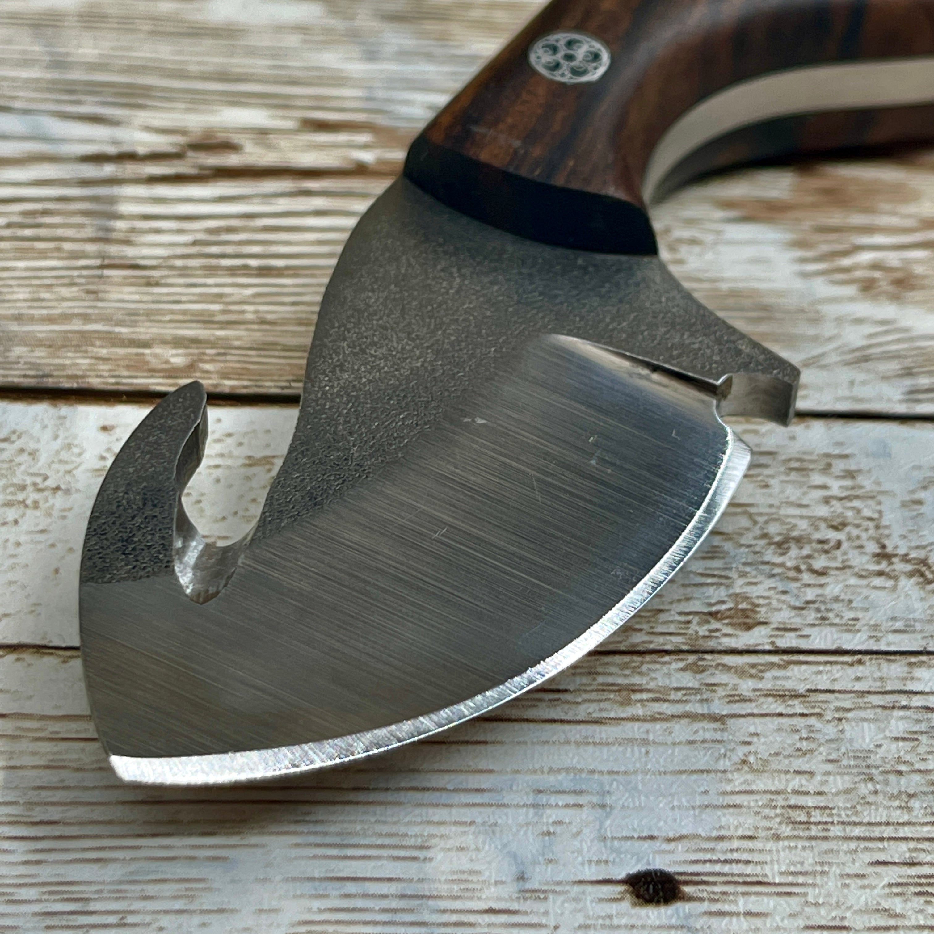Skinner Knife with Gut Hook Walnut Handle and Leather Sheath Bohler N690 Knife
