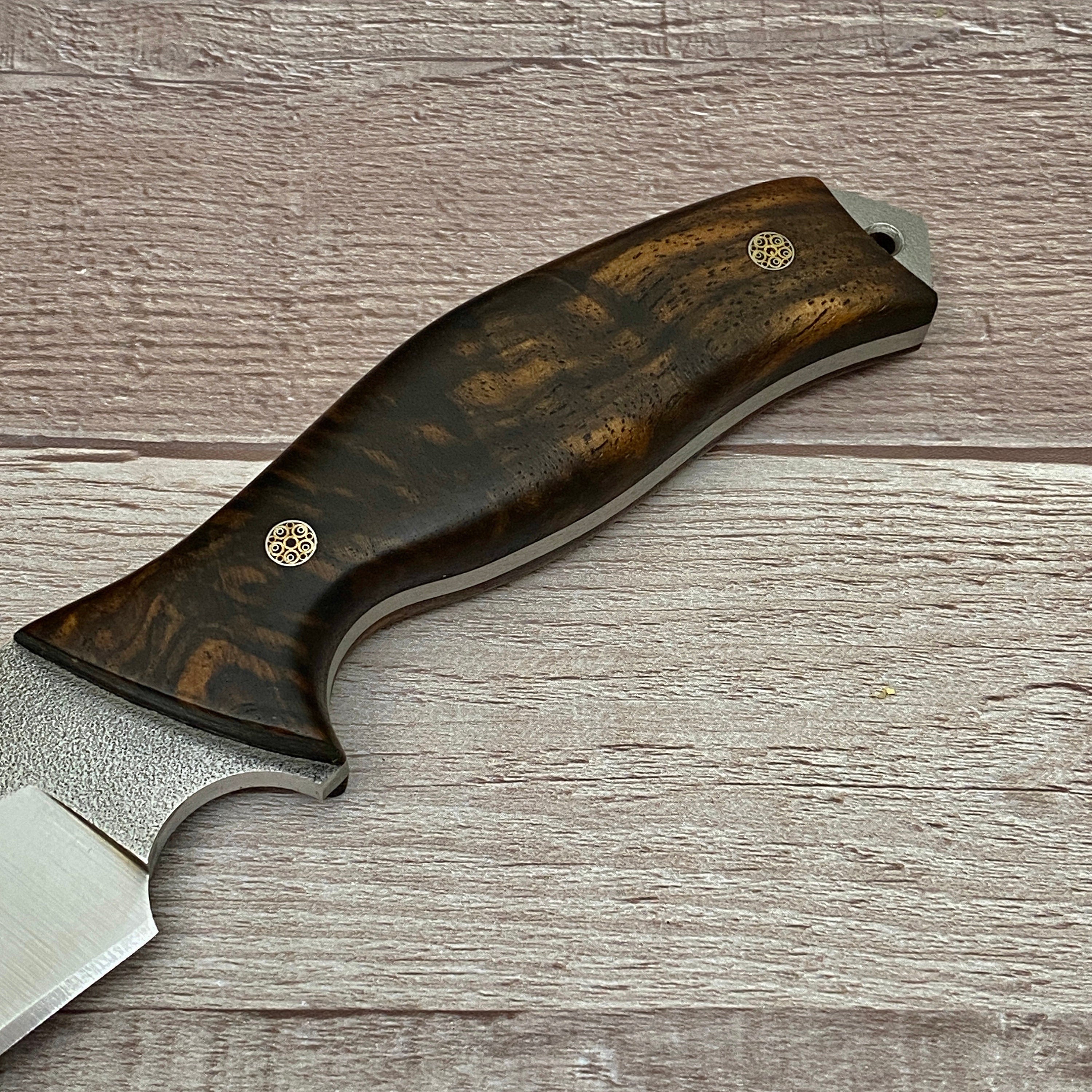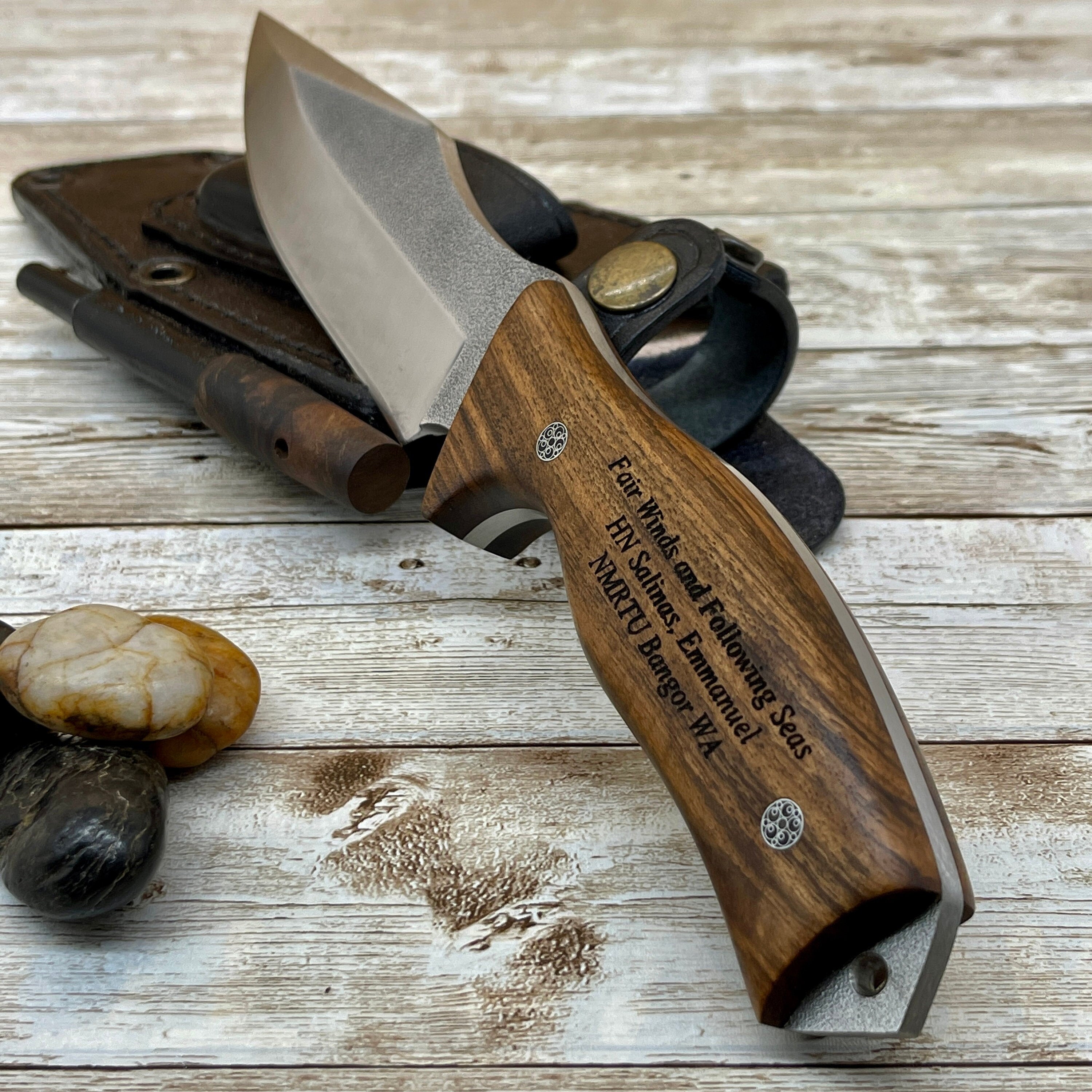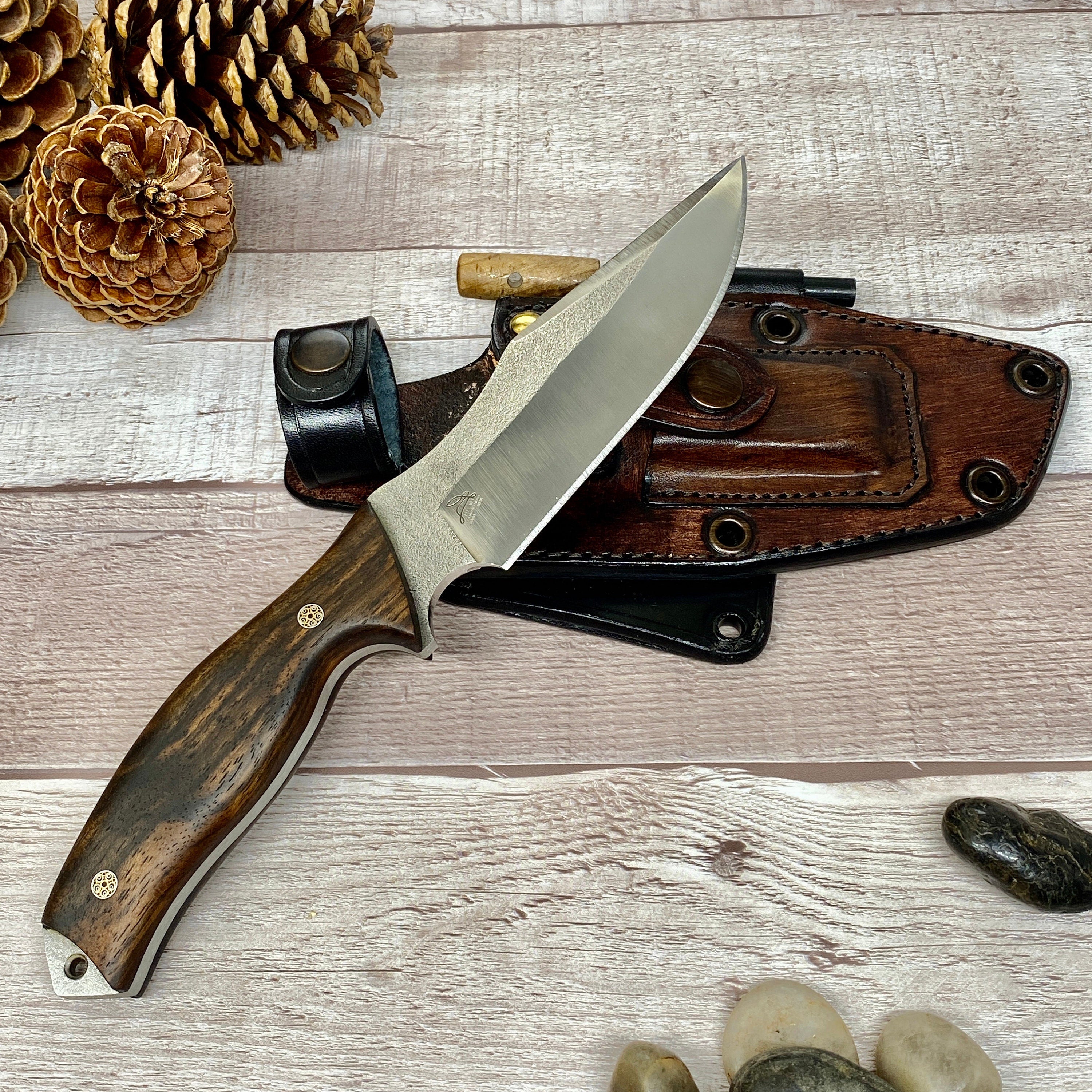 Tactical Knife with N690 Bohler Steel Walnut Wood Handle and 9/64 inch Leather Sheath Professional Knife with Opt. Laser Engraving Handle