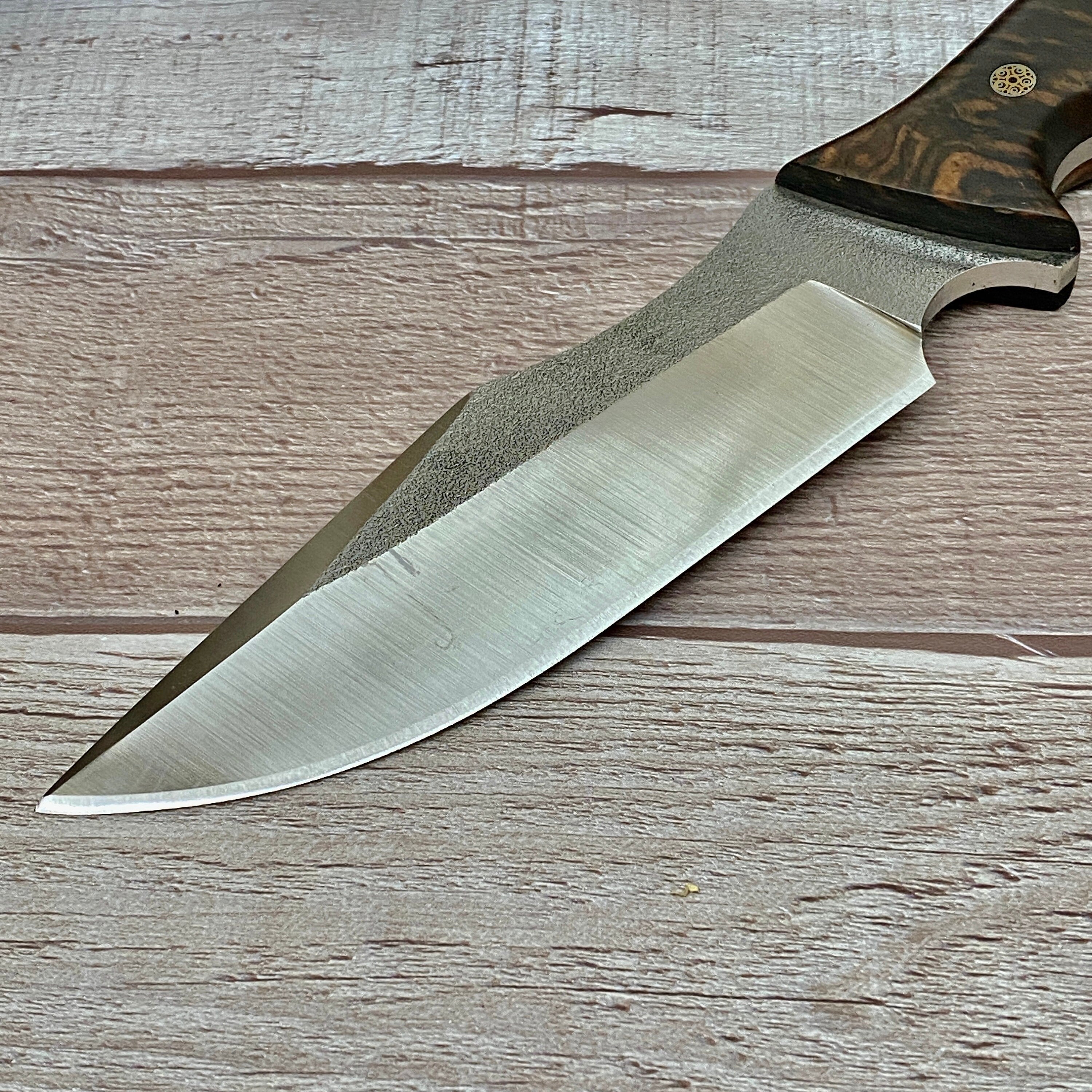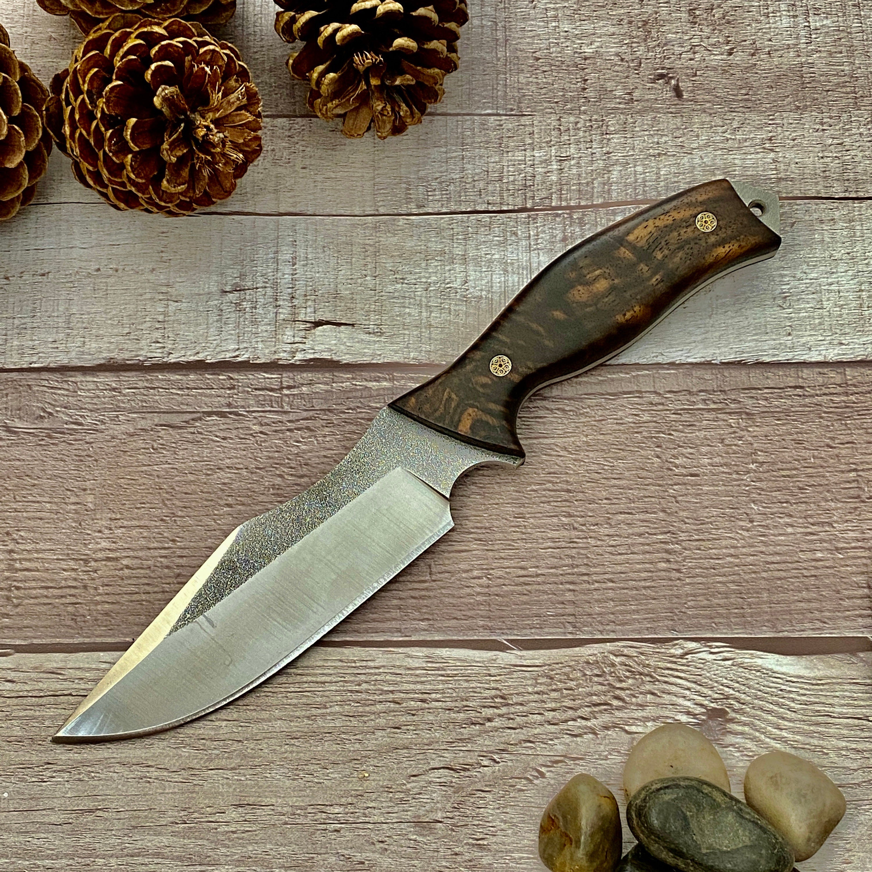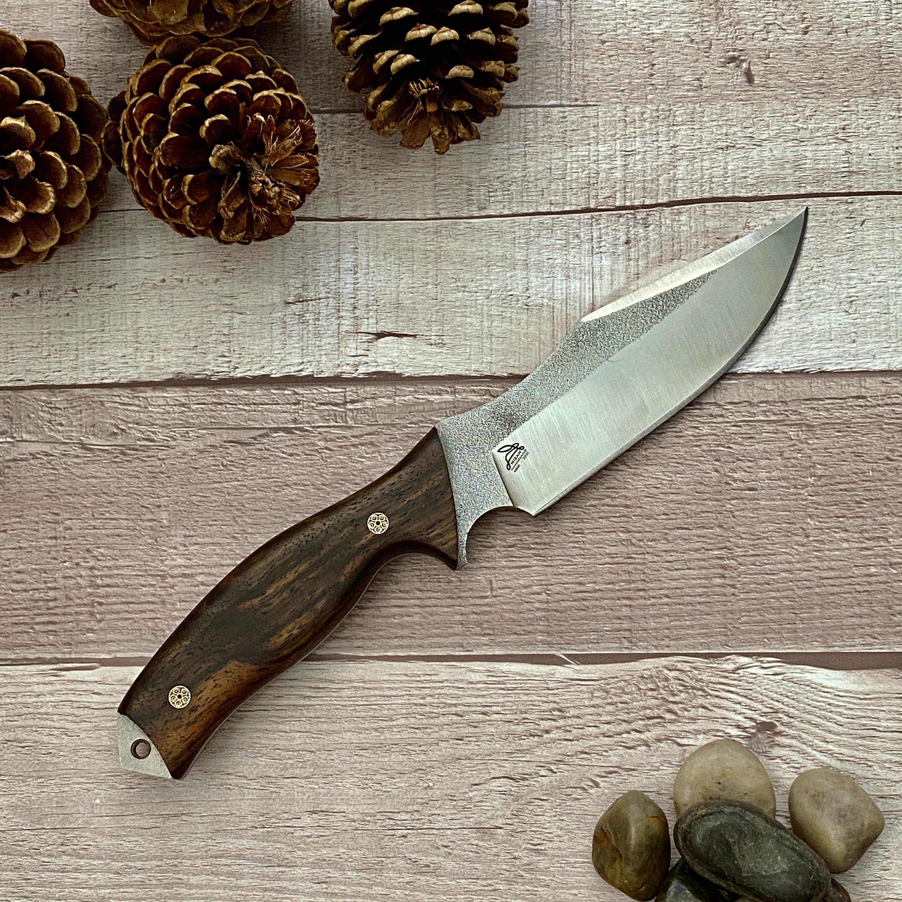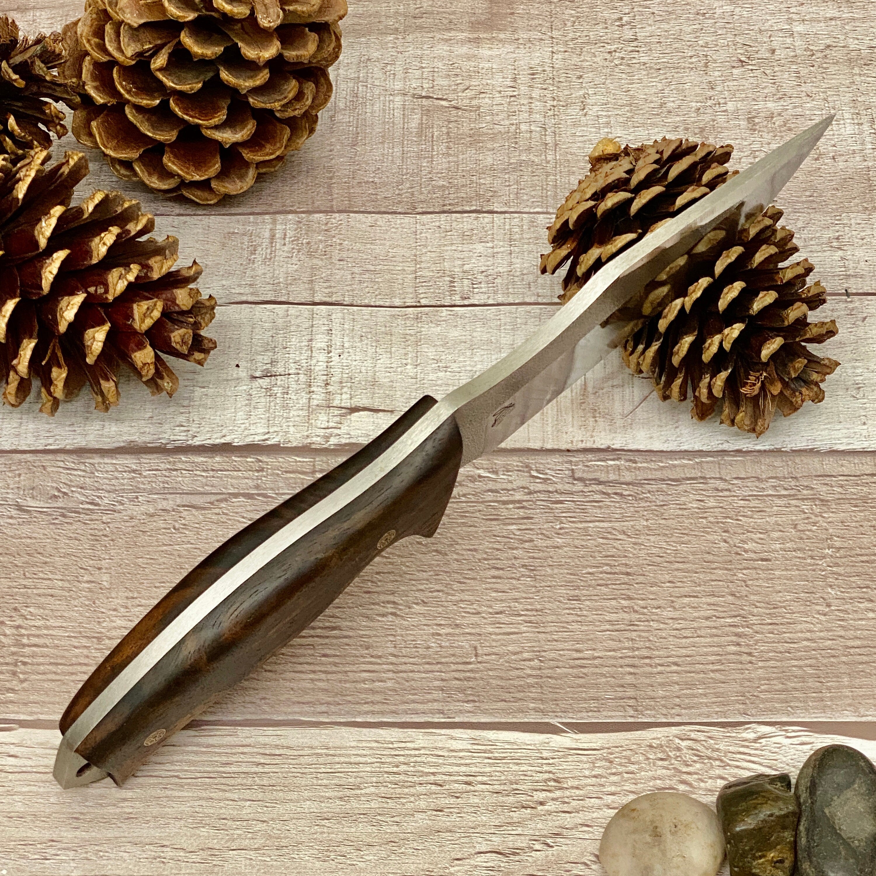 N690 stainless steel material: Our hardy knife's blade is made using N690 stainless steel It's then heat-treated to 60-61 HRC. We also employ the 400 grit machine finish for the blade. The aftermath is a durable and strong knife immune to rusting and tough to break.